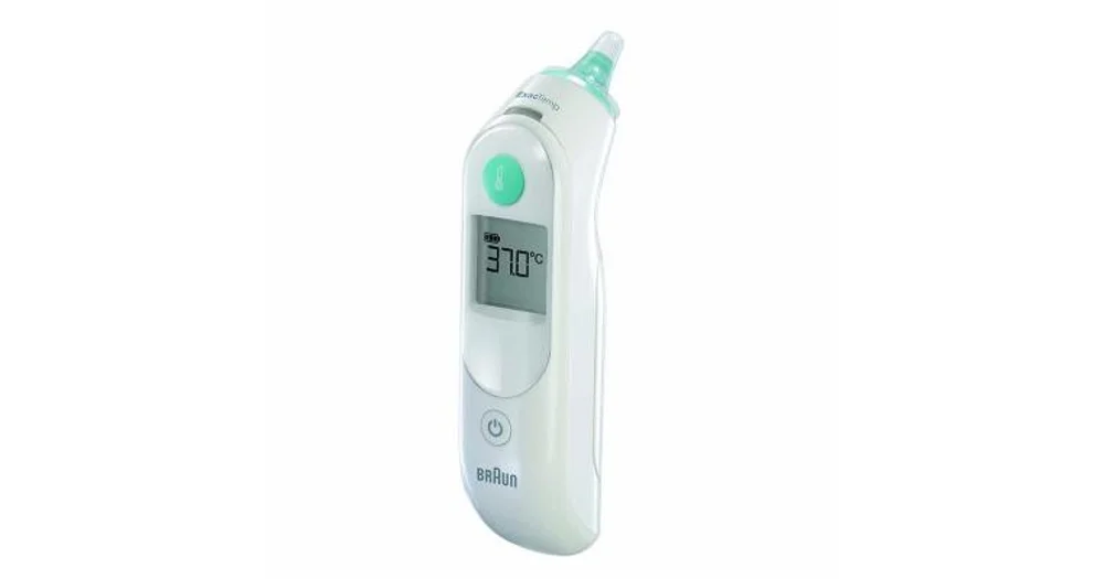 This braun digital ear thermometer measures the infrared heat put out by the eardrum and surrounding ear tissue.